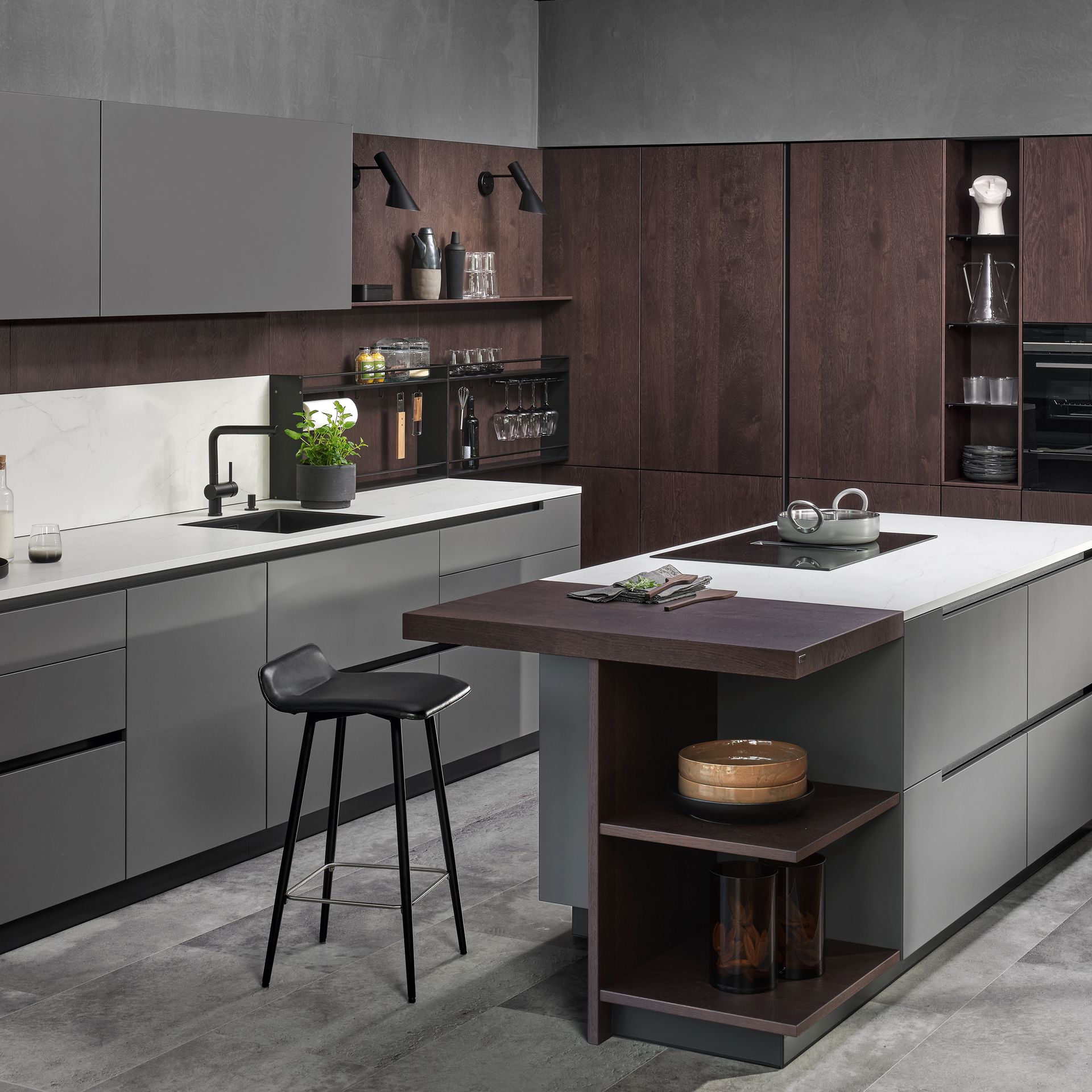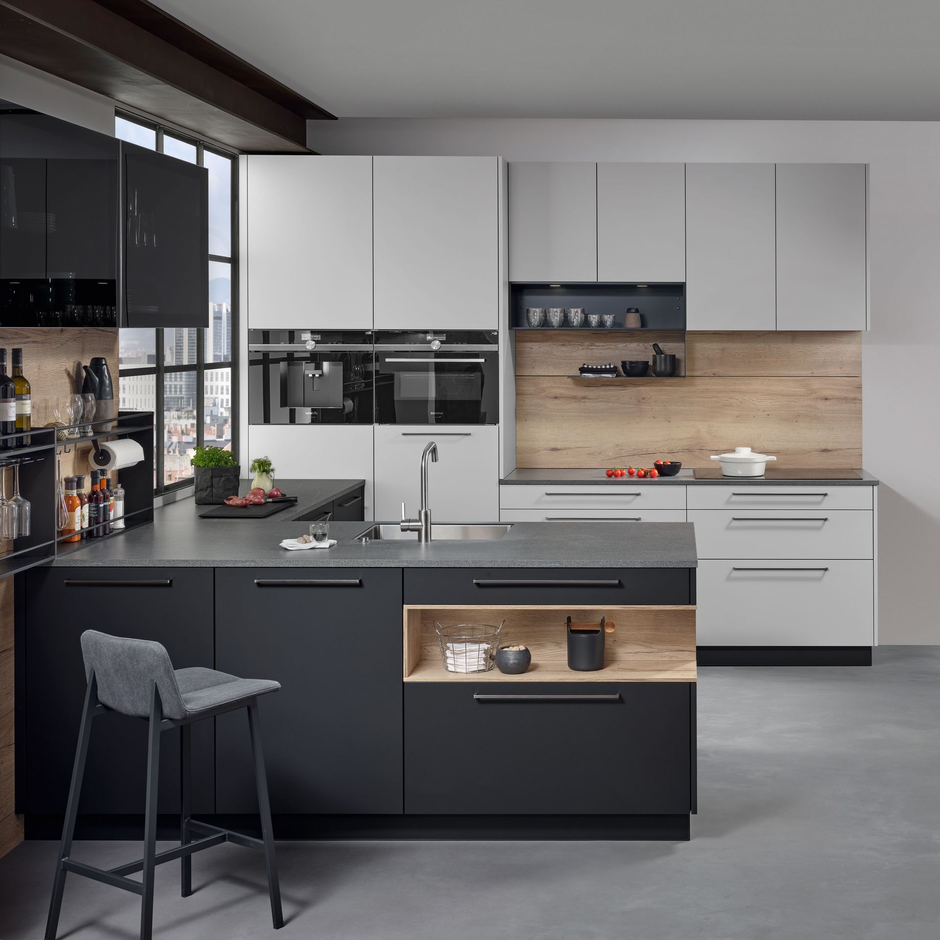 Wie sieht die Küche in den 2020-er Jahren aus? Eines ist klar: Sie ist offen für Neues. Offenes Wohnen ist so aktuell wie nie zuvor, und die einzelnen Lebensbereiche verschwimmen. In der Küche wird gearbeitet, gustiert und gekostet, auch gegessen, gechillt und verweilt. Das nicht mehr so wie vor einigen Jahren meist in klinischem Weiß, sondern in eher dunkleren Tönen. Dabei reicht der Bogen von Anthrazit über Mitternachtsblau und Tannengrün bis zu dunklen Hölzern, in die sich immer wieder ein neuer, leichter Rosé Ton mischt und für frischen Wind sorgt. Diese Farbwelt ist oft matt, in Anti-Fingerprint Optik, meist grifflos und mit vielen praktischen Details gespickt. Es gibt unzählige Varianten, um typische Küchenhelfer verschwinden zu lassen, die dann mit einem Handgriff sofort parat sind. Die Zeiten, in denen die Küche offensichtlich mit ihren technischen Hilfsmitteln geprahlt hat, sind Schnee von gestern. Alle Linien sind klar und puristisch. Die Küche beeindruckt als stylishes Designmöbel und Blickfang zugleich.